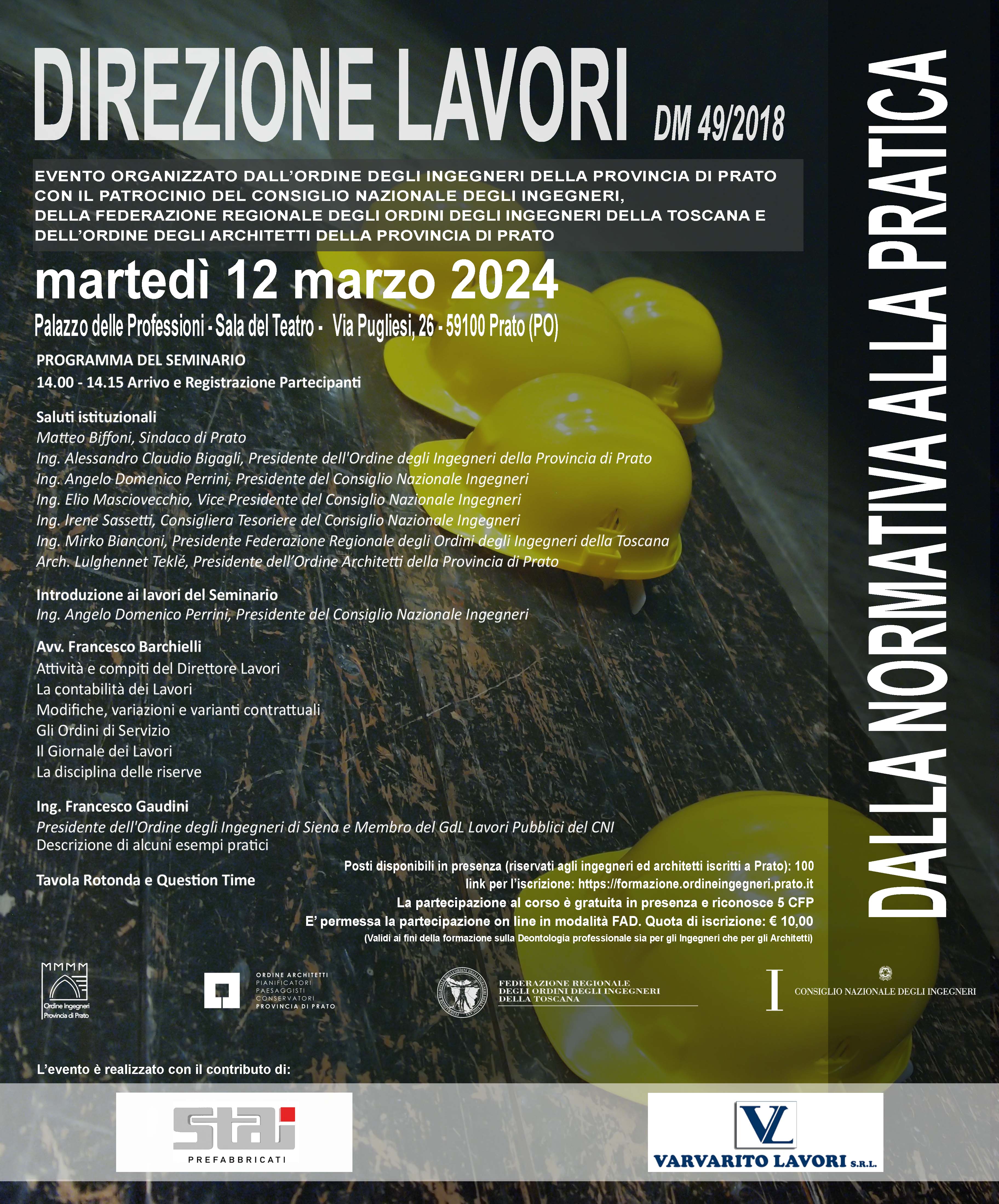 Programma Seminario su: Direzione Lavori: dalla normativa alla pratica - 12 Marzo 2024